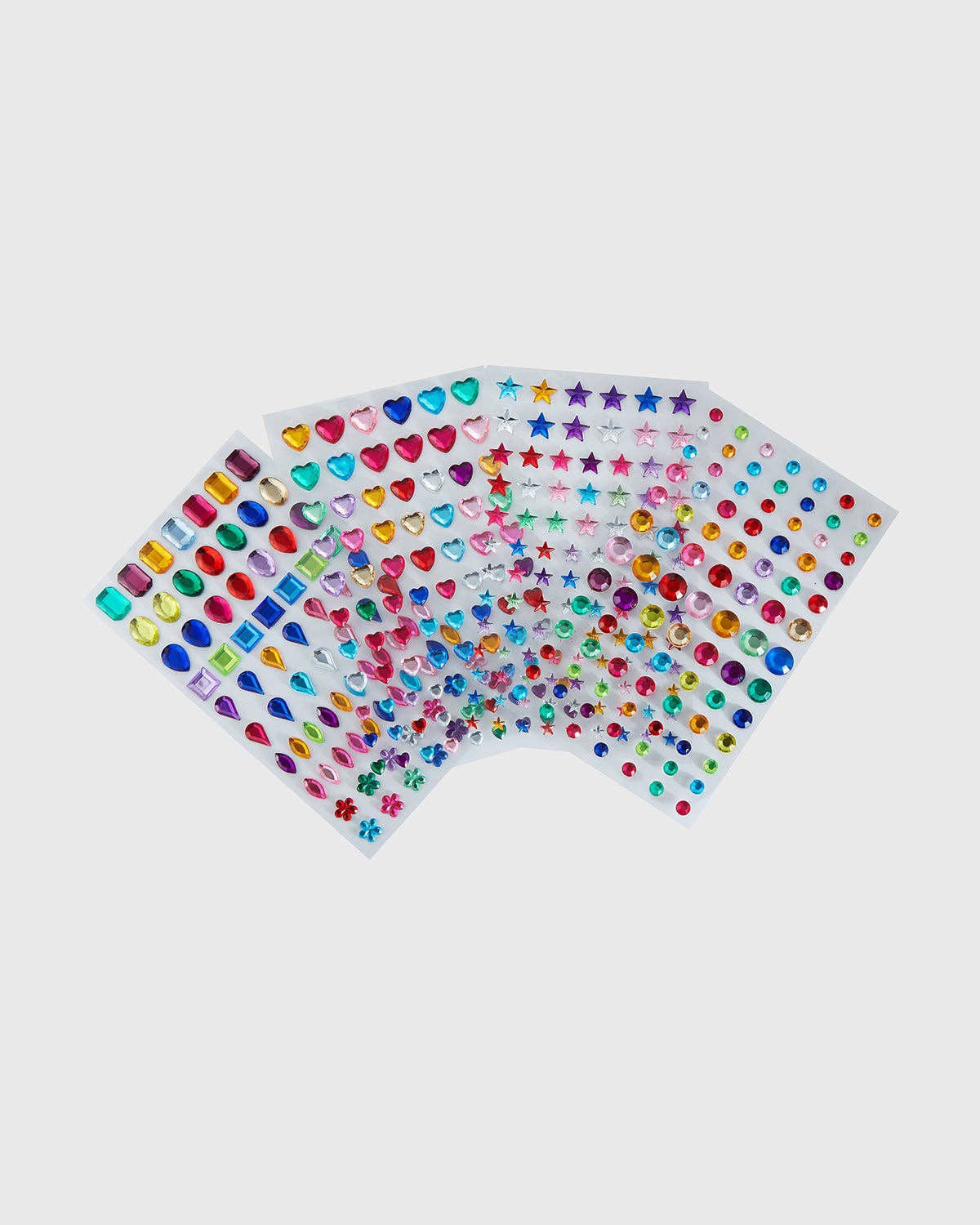 You want sticker gems on your face, on your clothes, in the car, at the park? This conveniently sized spiral booklet is instant entertainment anytime, anywhere—perfect for craft-time, play-time, or getting fancy! Four sparkling sheets of hearts, stars, flowers, and more! Yep, we’re confident they’re gonna love this (it’s our best-selling item!).