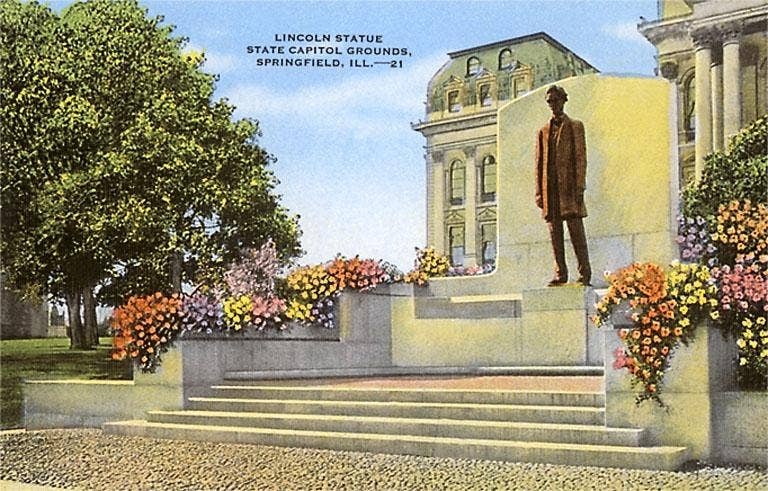 Lincoln Statue, Springfield, Illinois - Postcard