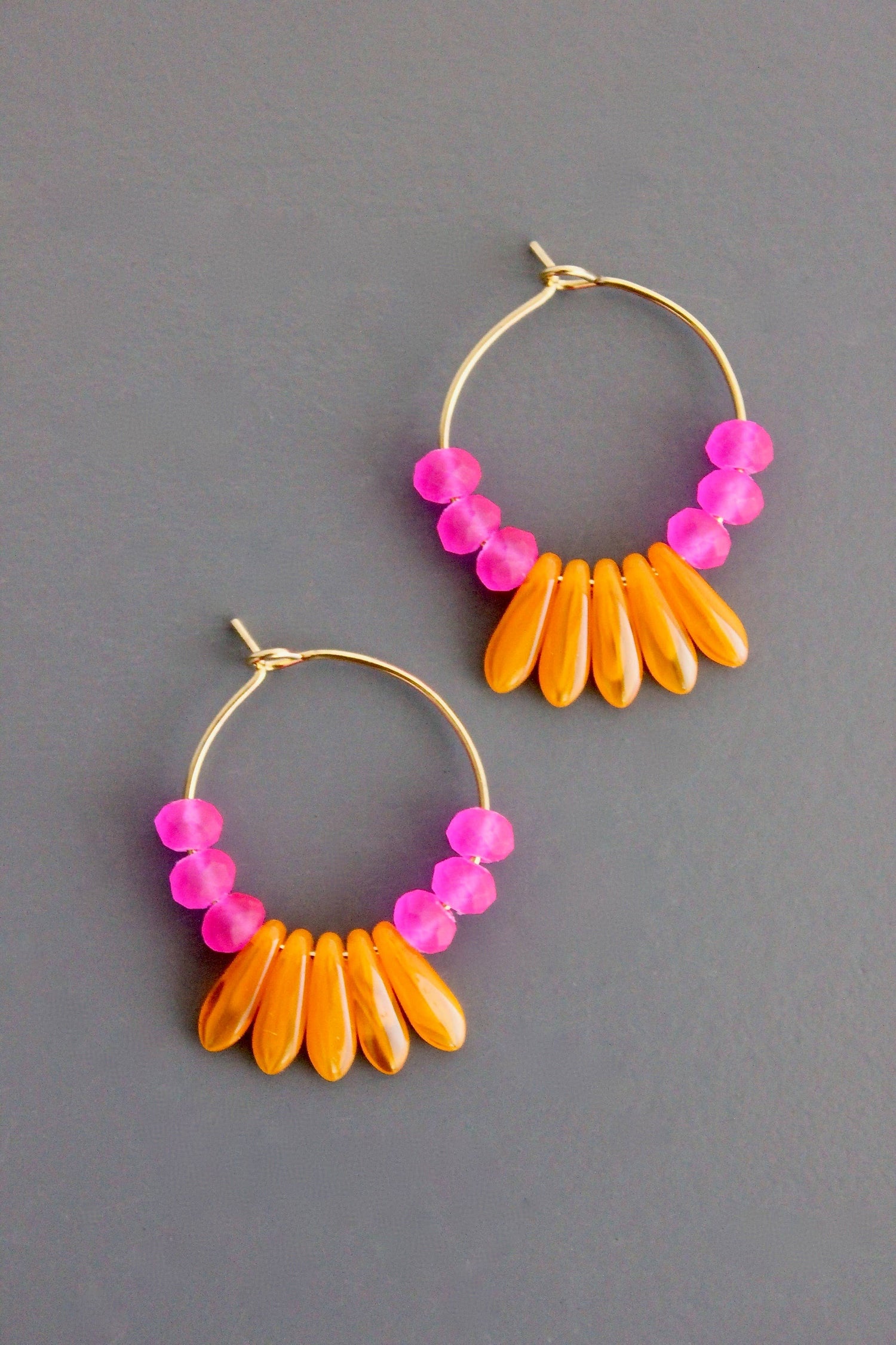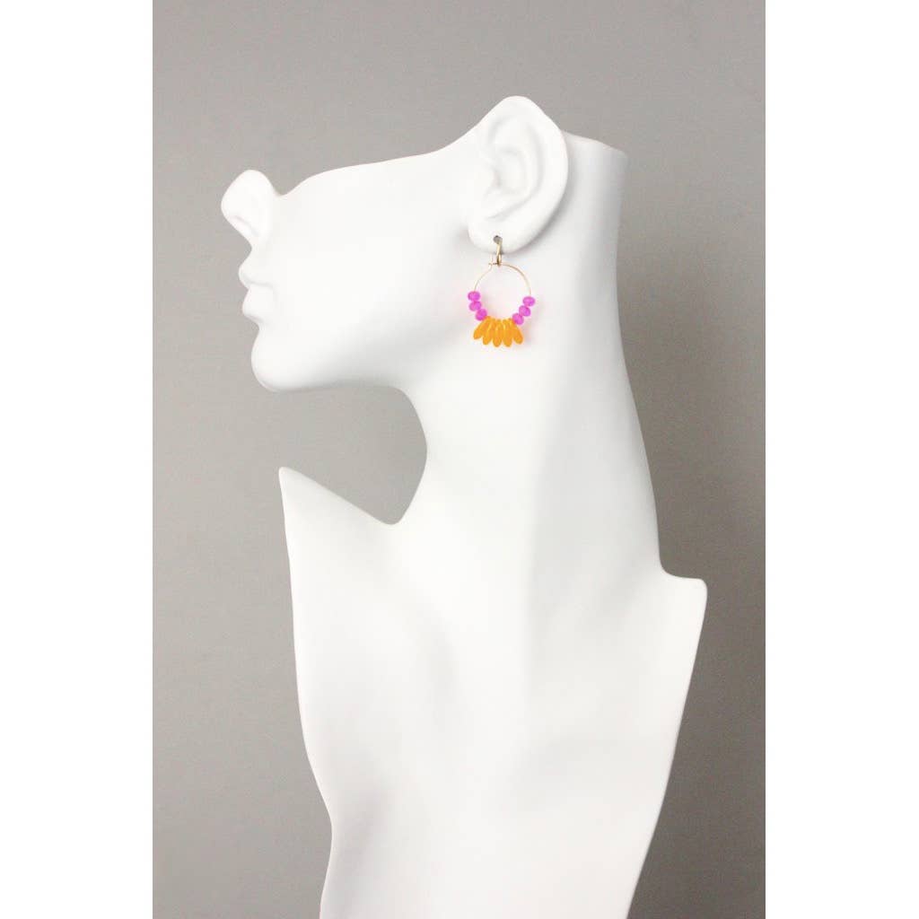 Pink and Orange Glass Hoop Earrings